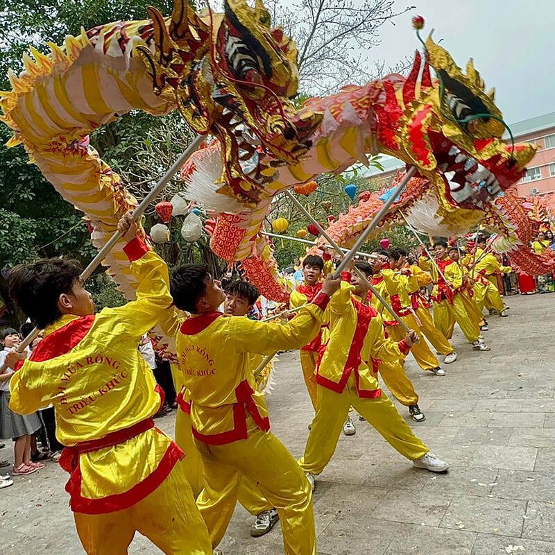 Enjoy the excitement of double dragons dancing exuberantly at a Tet Festival. (only on February 2025 tour)