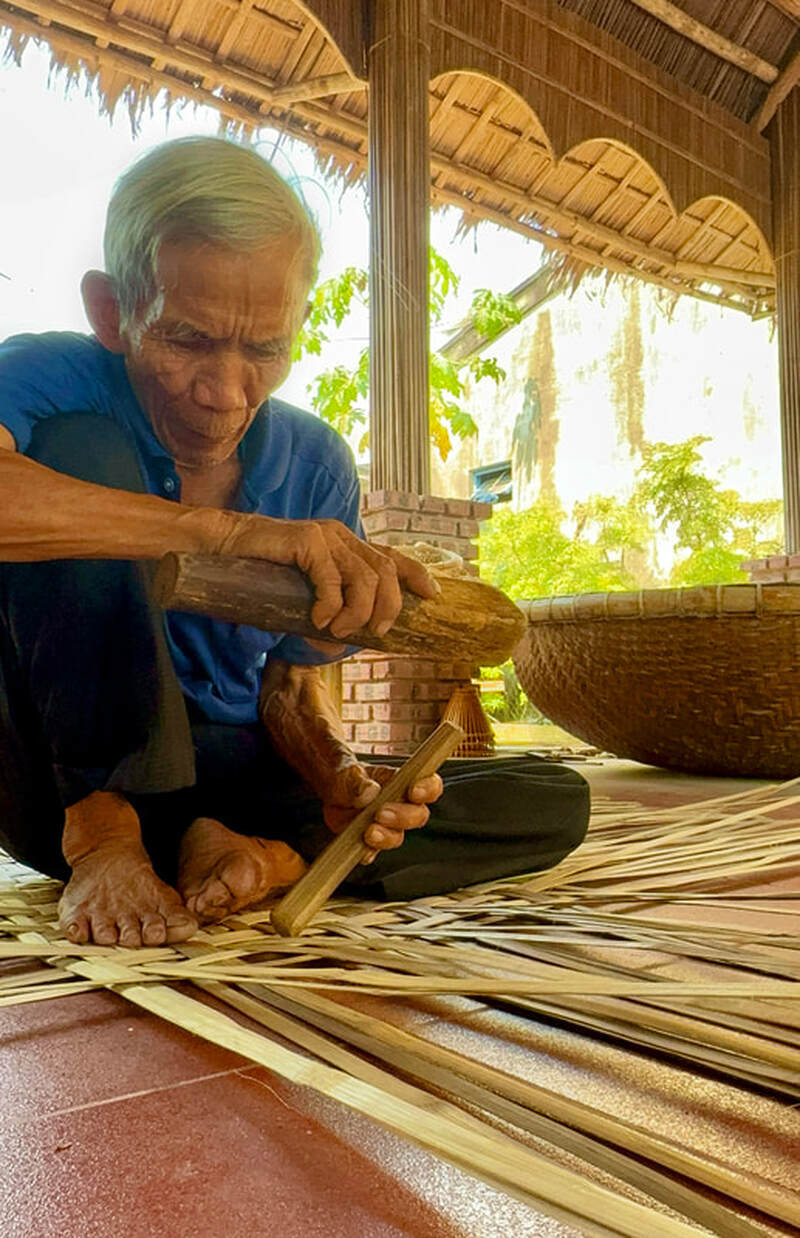 Four generations of Mr. Sau’s family have been making thuyền chai - Vietnamese basket boats - for over 50 years. He’ll tell you stories, teach you how and later we’ll get to ride in one!
