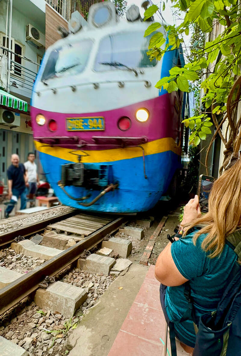 Experience the thrill of having a train pass at speed just inches from where you’re sitting on Hanoi’s famous Train Street!
