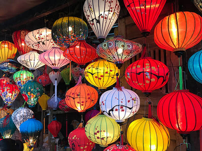 The charm and beauty of silk lanterns in Hoi An. When you see how beautiful this typical shot from the night market is, imagine how lovely it will be when your group floats candles down the river in front of shops like these. And oh yes ... you get to make a wish along with your candle!