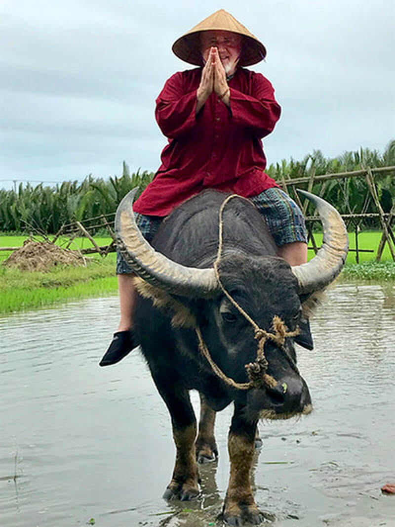 This 15-day tour of Vietnam immerses you in a cultural adventure that you’ll be talking about for many years to come. In it, you visit the homes of Hmong hill tribes where they teach you how to batik your own textiles; you ride a water buffalo and get hands-on planting rice in Hoi An; you row basket boats with local fisherman at our “secret beach” that’s not yet mentioned in any guidebooks (there, you can also collect some of the most beautiful shells we’ve ever seen!); you can eat Tiger Lobster - the most sought-after and expensive fish in Southeast Asia - that is so fresh, my friend Muoi literally dives into the ocean to catch it for you; take a leisurely bike ride through charming villages untouched by tourism; marvel at beautiful silk lanterns in Hoi An (the whole town is one giant photo opp!) and watch silk worms at work; photograph the luscious green and gold rice fields and terraces at harvest time in the mountain-surrounded valley of Mai Chau; “wow!” at the views as we drive along the stunning Hai Van Pass overlooking the South China Sea; visit the UNESCO World Heritage Cham ruins of My Son; learn the symbolism for dragons, phoenix, unicorns, turtles and bats and how they are used to tell stories in temples and pagodas. These are just a few of the magical activities we have in store for you.
